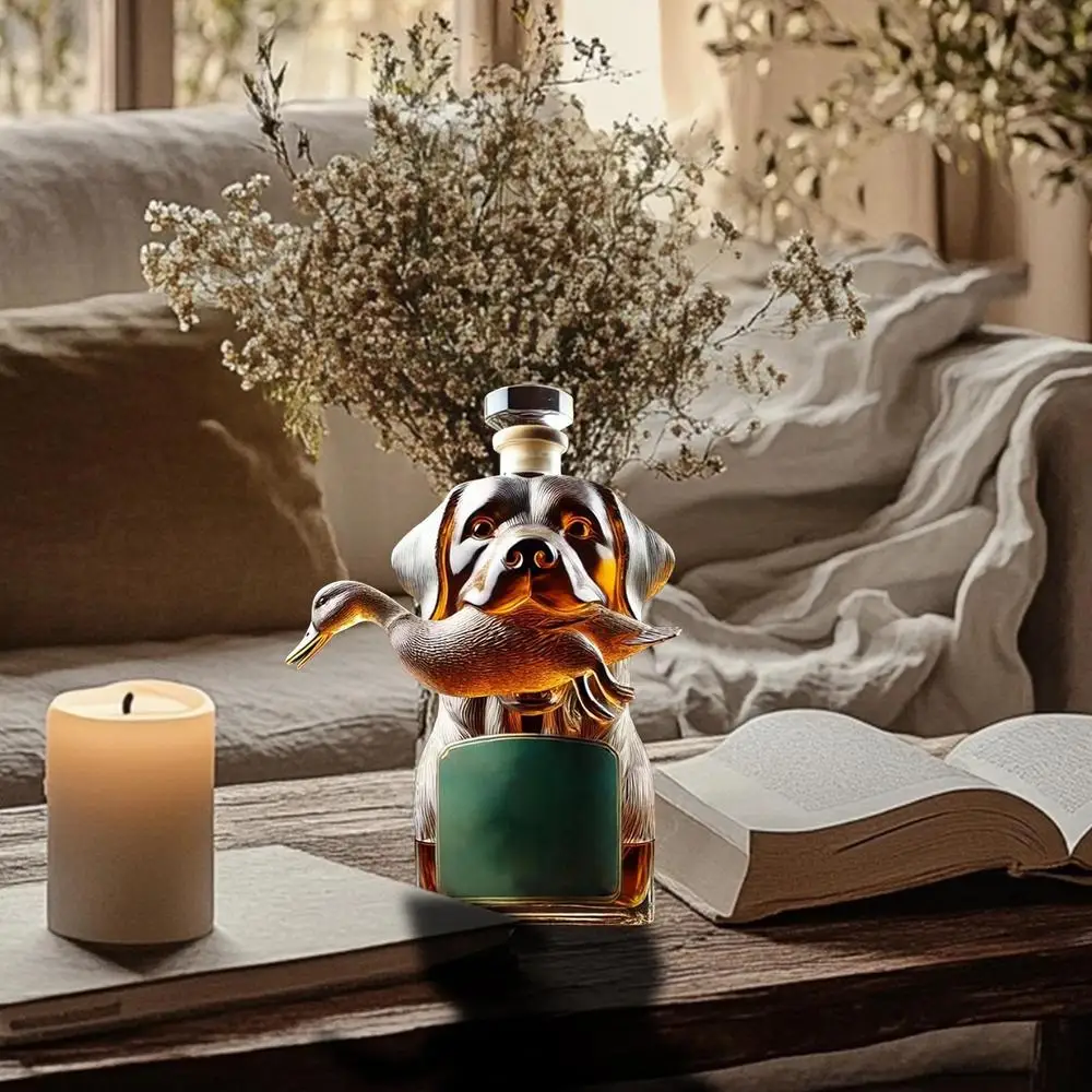 Glass Liquor Bottle Hound Glass Decanter Whiskey Bottle Airtight Alcohol Holder Container Dog Statue Home Decor for Brandy